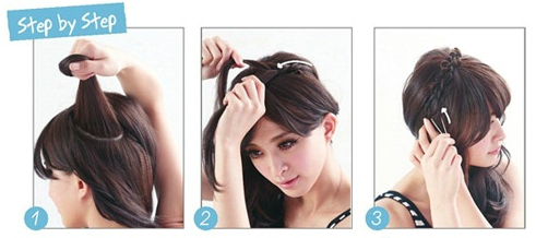 step 2:辫子往内收,最后用黑色小发卡固定于内侧。