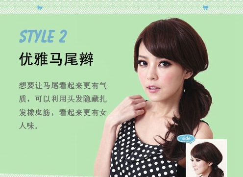 想让你的马尾赵兴看起来更加有气质?可以用头发隐藏扎发处,并稍微的将上面的头发弄蓬松一些,就变得更加有女人味。