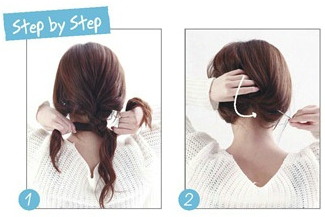 step 3:像绕圆般随性的缠绕发束,将缠成一个发髻。